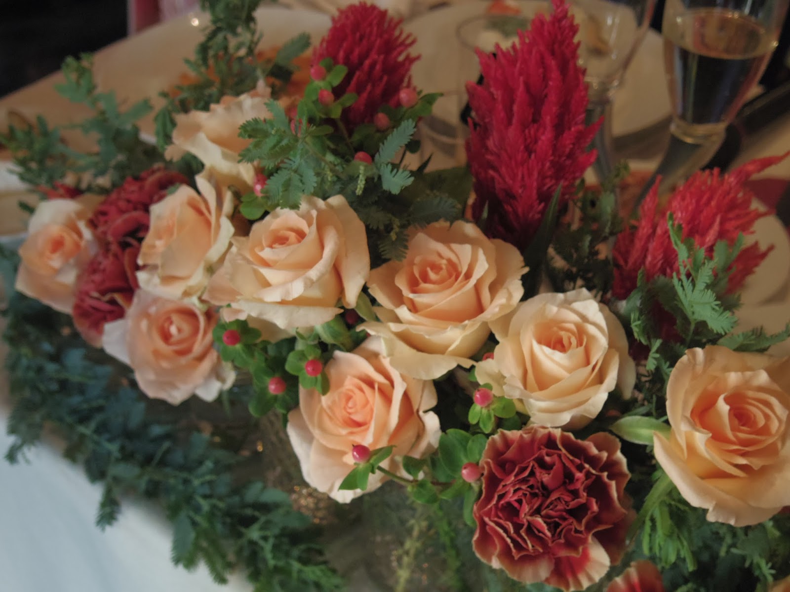 My flower arrangement for the bride and groom table, which I only had 15 minutes to do (eek!).